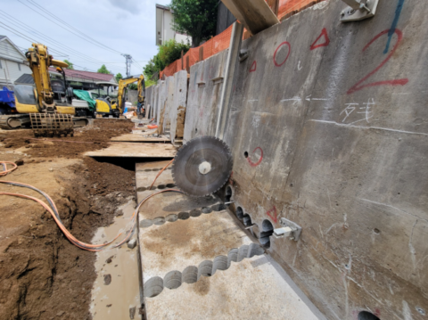 L型擁壁改修工事(コアボーリング+ウォールソーイング)