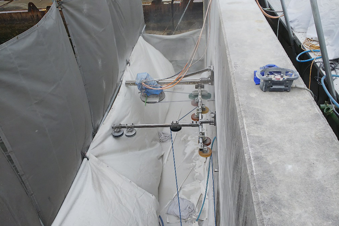 また、遠隔操作によって狭い場所や水中、高所などあらゆる困難な条件下でも安全かつ自由に施工ができます。